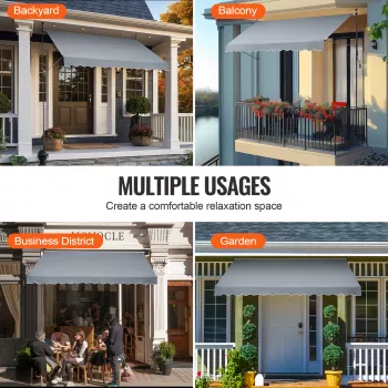 138"x47" Retractable Patio Awning – Adjustable Sunshade with Manual Crank