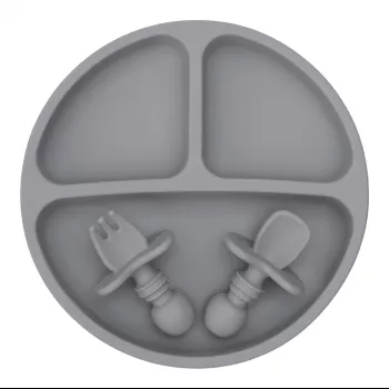3PCS Silicone Suction Baby Plate Set with Spoon & Fork – BPA Free Toddler Tableware